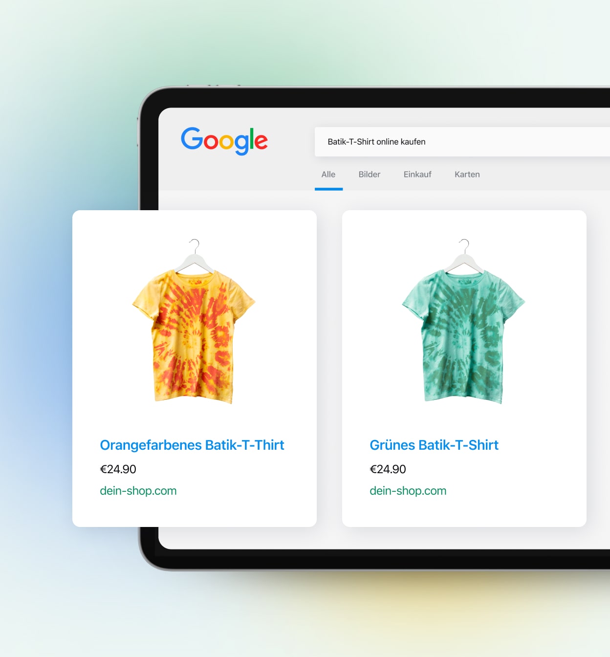 Erhalte Zugang zu Millionen von potenziellen Kunden, die bei Google nach Produkten wie deinen suchen! Präsentiere die Produkte deines