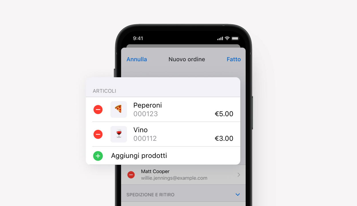 Il tuo negozio rimane operativo a qualsiasi ora del giorno. Accedi all'inventario e agli ordini direttamente dal dispositivo mobile, in qualsiasi momento, da qualsiasi luogo.