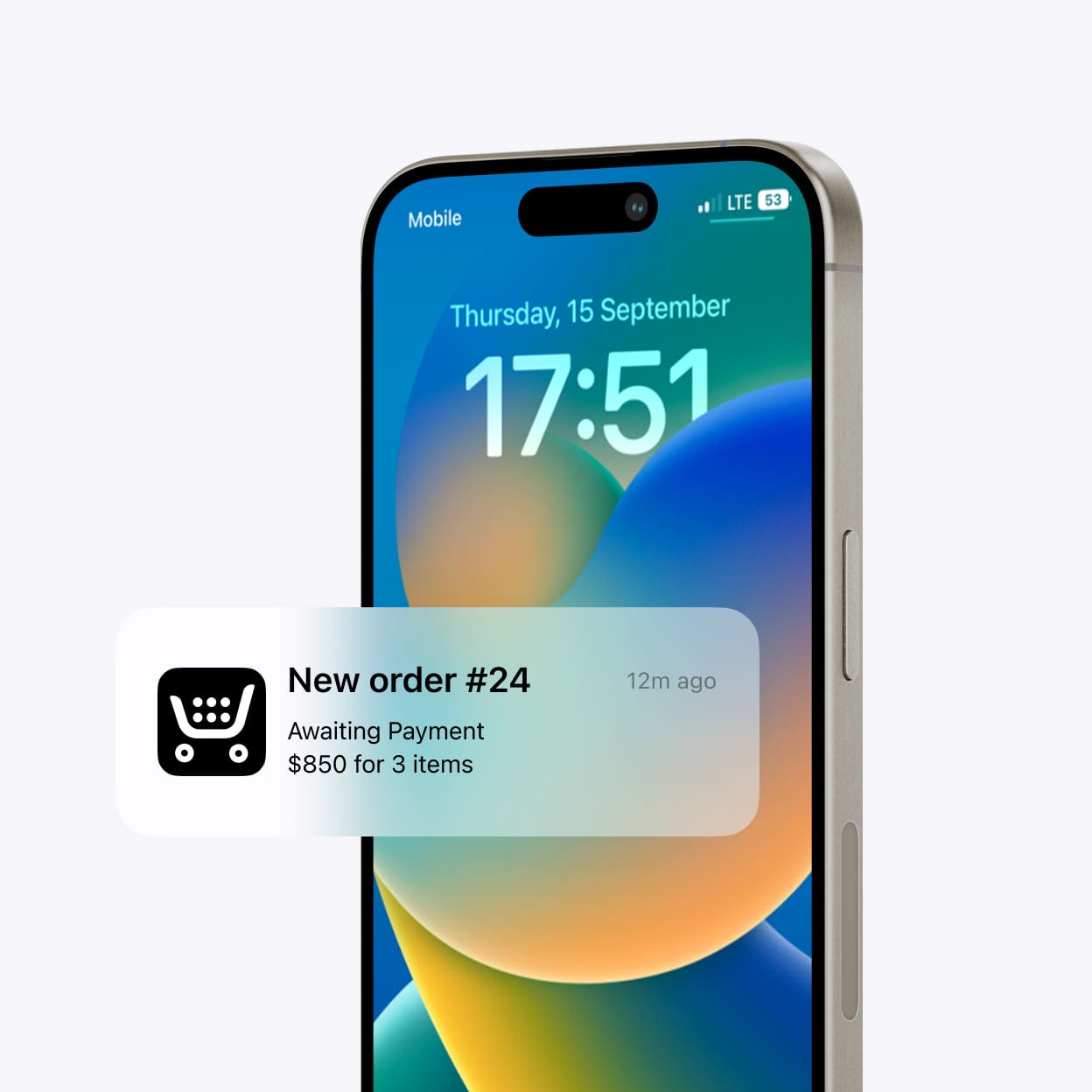 Get notified of all new orders or any product updates in your online store, low inventory, and more. Never miss a beat, and keep your business thriving.