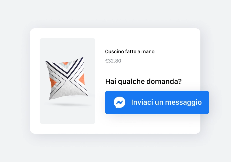Aggiungi Facebook Messenger al tuo negozio e alle pagine dei prodotti per interagire con i tuoi clienti mentre fanno acquisti. Fornisci suggerimenti e rispondi alle domande per aumentare i tassi di conversione.