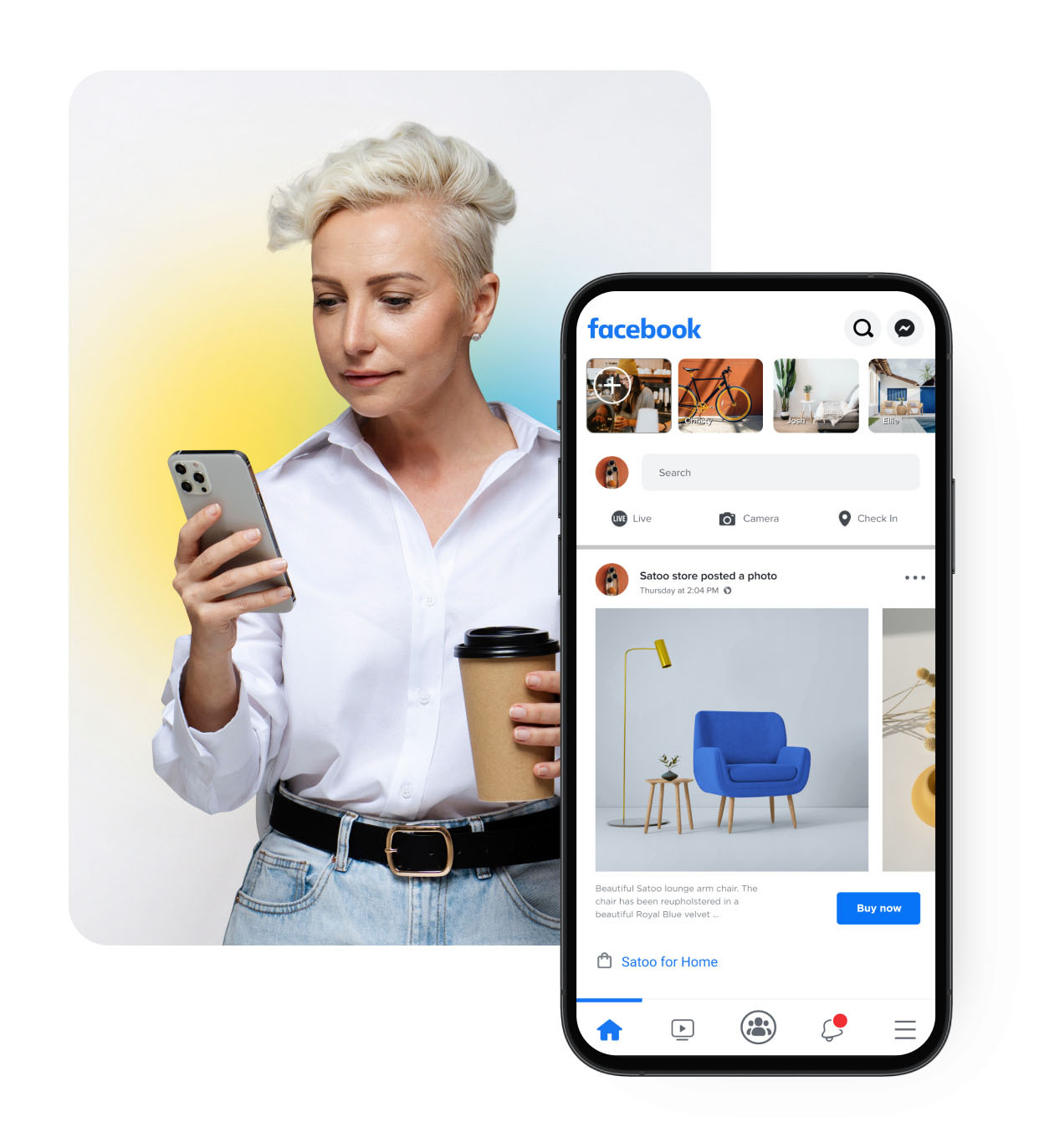 Get your products on the social media app with the most active users — worldwide. Attract a new audience and expand your selling with Facebook.