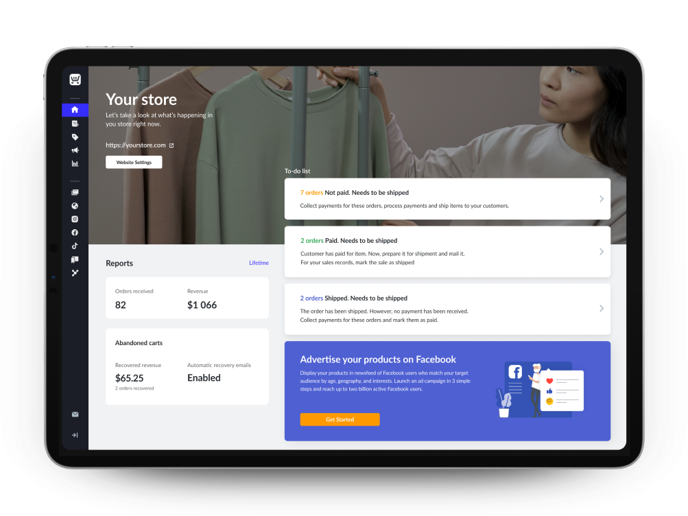 Sell on your website, Facebook, Instagram, Amazon, eBay, mobile apps and manage everything from a single control panel