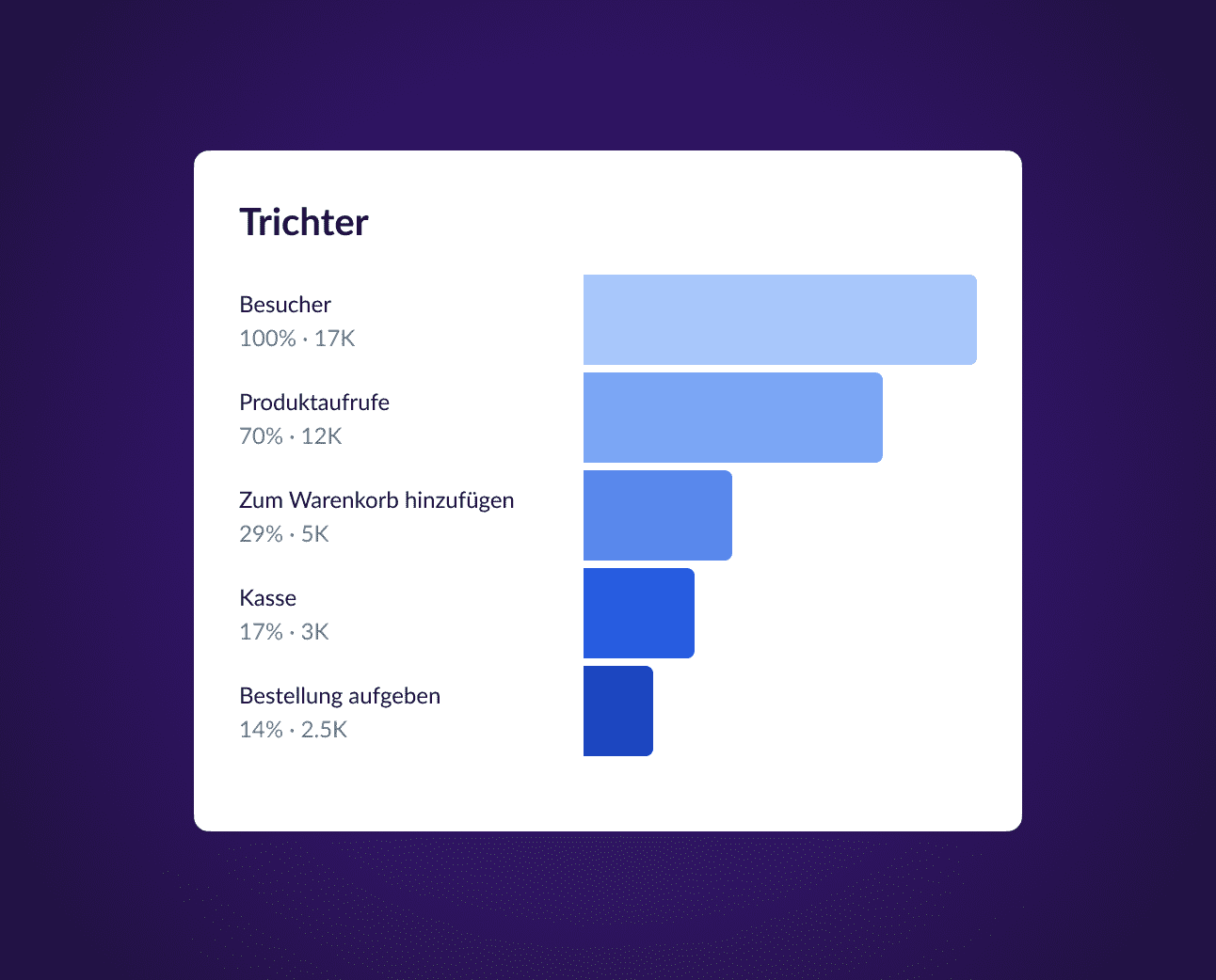 Messe die Leistung aller Schritte des Trichters, von den Seitenbesuchen bis zu den abgeschlossenen Käufen