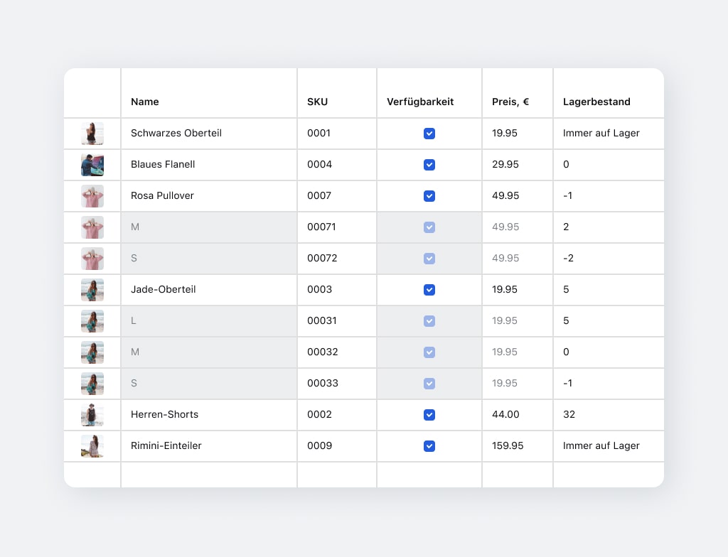Führe vollständige und genaue Aufzeichnungen aller Warenbestände für jedes Produkt und jede Produktoption