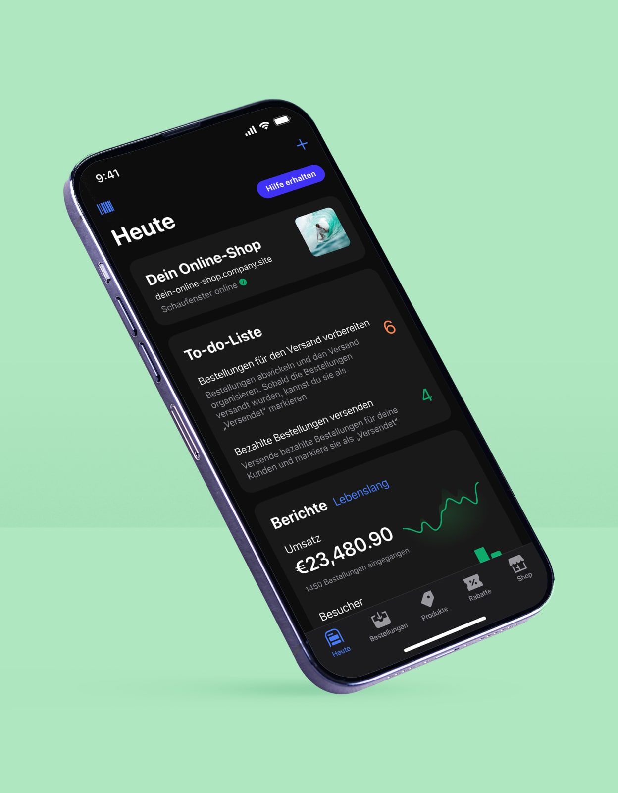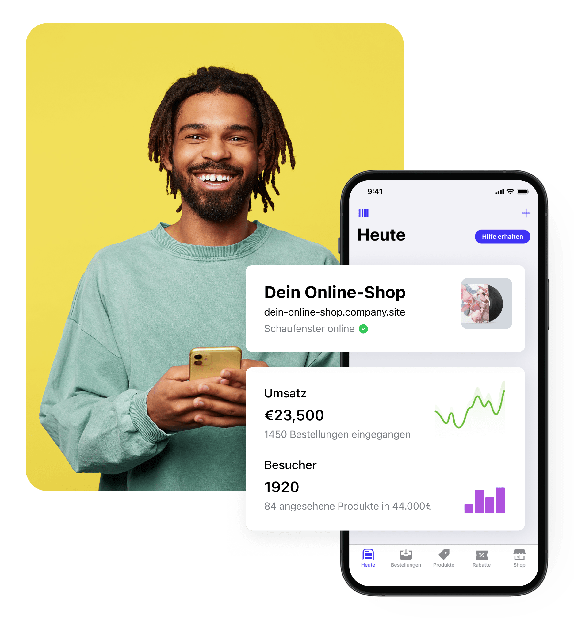 Füge neue Produkte mit einem Foto hinzu, teile sie auf Facebook oder Instagram, nimm Zahlungen entgegen und verwalte deine Bestellungen — und das alles mit nur wenigen Mausklicks!