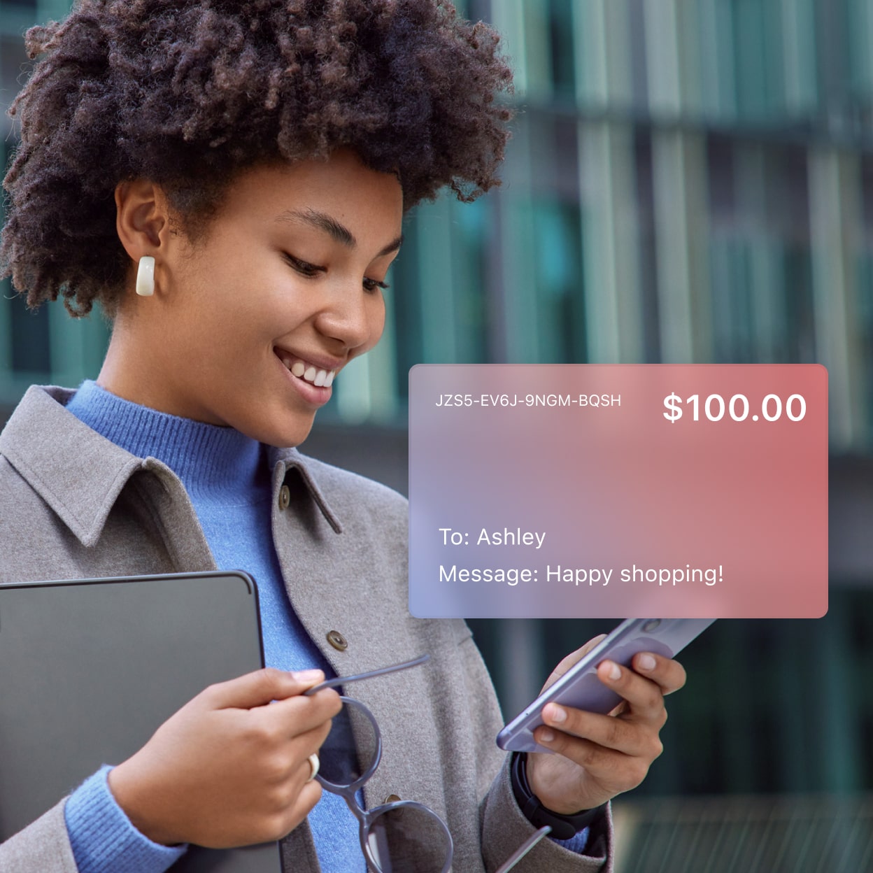 Let your customers purchase customized gift cards, whether for themselves or as a thoughtful gift. Gift cards ensure a future purchase as customers are likely to spend more when using gift cards.