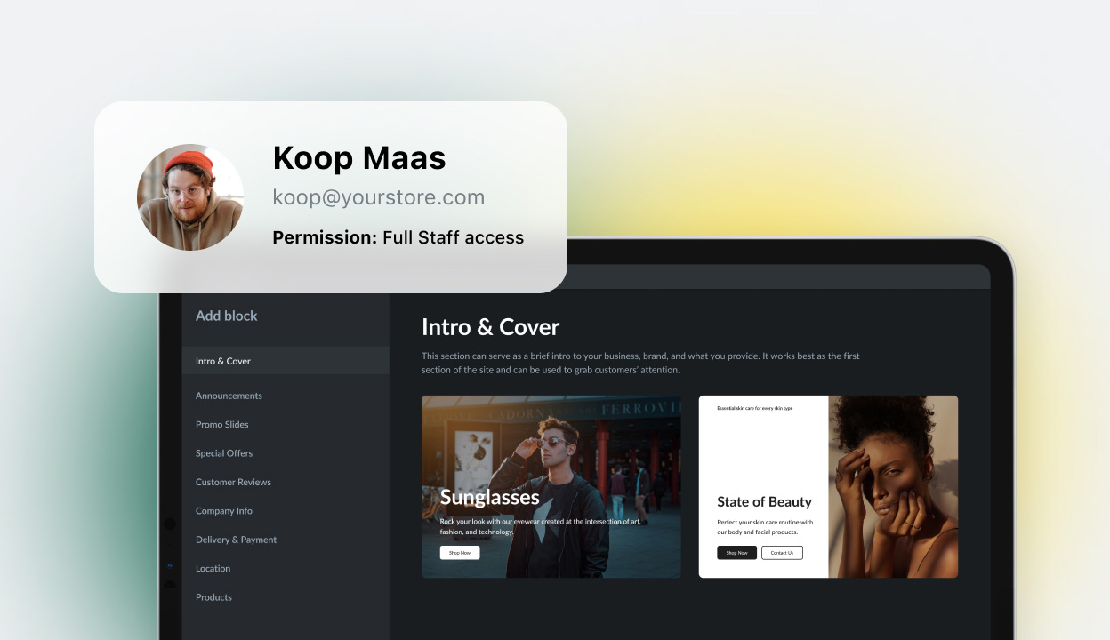As your store grows, so will your team. With Ecwid, managing and onboarding your team is a breeze. Grant your staff access to specific tools, ensuring they have everything they need to make your store thrive!