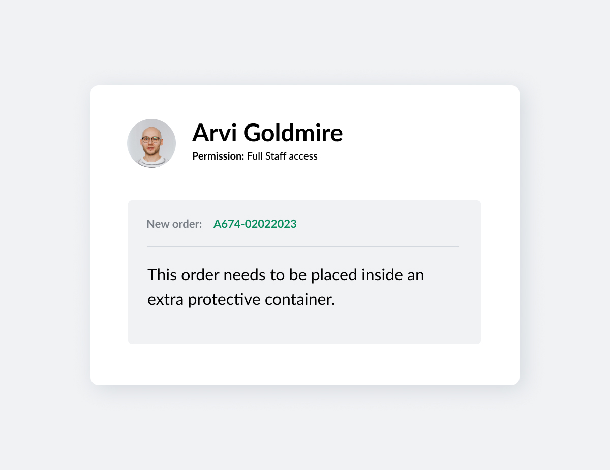 Add comments and notes that are only visible to managers such as special instructions for the order
